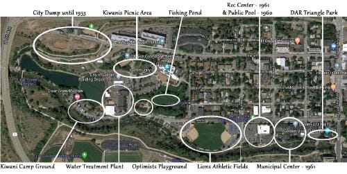 I’ve long been puzzled by the origins of what we now call Lions Park. In my reading of old Colorado Transcripts, I’ve seen it called by many names. A 1953 article called it Golden’s City Park. A 1962 article remarked that both “Carpenter Park” (after a former Mayor) and “Memorial Park” had been suggested. The Transcript called it “Carpenter Park” throughout 1962.