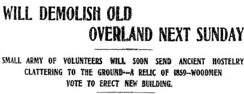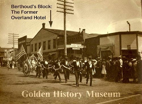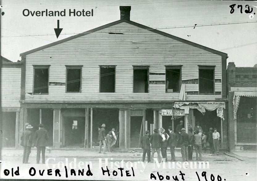 The November 10, 1910 Colorado Transcript announced the upcoming demolition of the Overland Hotel building. This was one of Golden’s oldest buildings at the time, having been built in 1859–the very first year of Golden’s existence.
