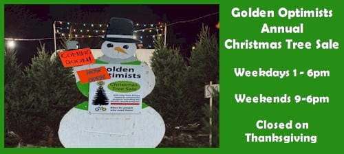 The Golden Optimists Christmas Tree Sale is back this year! They are selling at US Bank at 19th and Jackson (map). The Optimists will again be helped by Boy Scout Troop 329. Proceeds support community projects of the Optimists as well as the scout troop. Weekday hours 1PM – 6PM, Saturday and Sunday 9AM – 6PM.