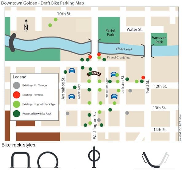 The Mobility Board will discuss proposed locations for bike racks downtown and will review the pros and cons of various styles of bike racks.