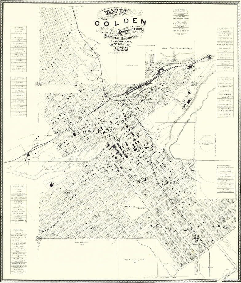 One of my favorite research tools is the 1878 Willits Map of Golden. It provides incredible detail about exactly what was here in that year. Check out this piece of downtown:
