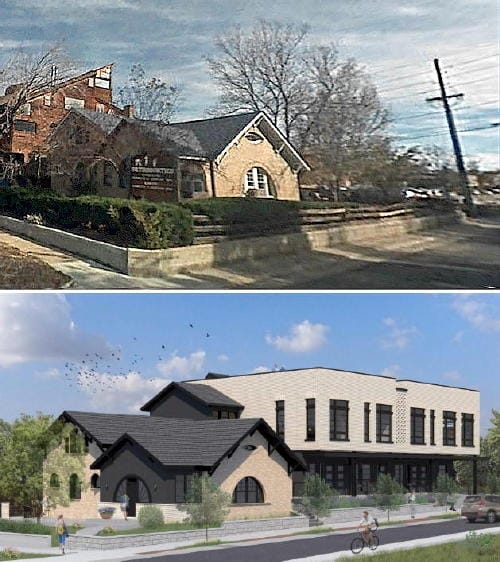 The second case concerns the corner at 21st and Ford, which currently contains a small commercial building. The plan is to replace it with a larger commercial building and 5 townhouses. The townhouses will all be on individually owned lots, and each will be 100% residential, so those will each require a Special Use Permit.