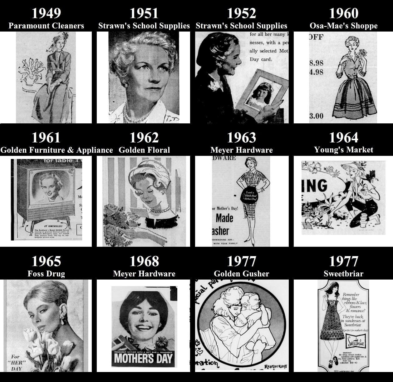 By the 1950s, any “female” gift was in play, including clothing, perfume, and labor saving appliances. The online Transcripts stop in 1977. At that time, Mothers Day had not yet become the big dining-out extravaganza that it is today.
