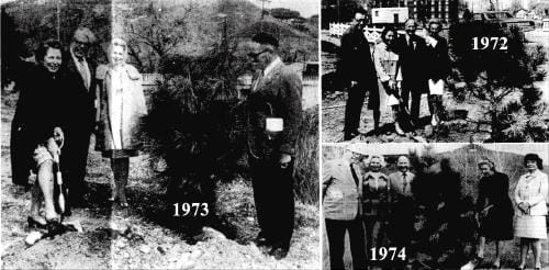 Many of our service clubs (Kiwanis, Optimists, Lions) were developing Lions Park at that time. The Daughters of the American Revolution, which ran the history museum, decided to landscape this newest parcel of City property. They purchased picnic tables and planted trees near the Creek. Many of those trees are still thriving along the path between the Visitors Center and Creek.