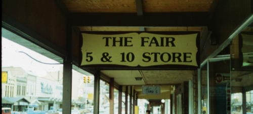 In 1949, they built an addition to the store in the formerly vacant lot next door. In 1955, they became part of the national Ben Franklin chain, but in 1967, they went back to being “The Fair.” (The Transcript commented that “all of us old-timers are happy to go back to calling the store by its right name again….”)