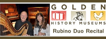 Golden History Center welcomes back these talented musicians for another Rubino Duo Recital. Liz Hicks-Kimmey will dazzle you on the flute and Don Hilsberg will lull you with the harp. They will cover the works of diverse composers from the 18th through the 20th centuries. This recital is open to all ages and will take place at the Golden History Center tonight from 7:30 – 9:00 p.m.
