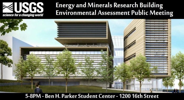 The U.S. Geological Survey (USGS) is announcing an upcoming 30-day public comment period (beginning February 8 th , 2023) and availability of a Draft Environmental Assessment (EA) for a proposed research facility on the Colorado School of Mines campus in Golden, CO. In addition, an informational public meeting will be held at the Colorado School of Mines on February 15th , 2023. The proposed building, referred to as the Energy and Minerals Research Facility (EMRF), would provide a new home for the Central Energy Resource Science Center and Geology, Geophysics and Geochemistry Science Center, which are currently located on the Denver Federal Center (DFC) campus in Lakewood, CO. The building would also house staff from the Colorado School of Mines