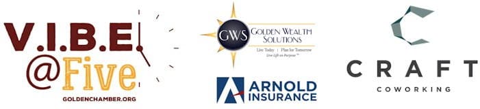 VIBE@FIVE is Golden’s Happy Hour! Come join other members of the Golden Chamber of Commerce for this “Very Important Business Event” – VIBE! This month’s VIBE@Five will be hosted at: Craft CoWorking – Golden, in partnership with Arnold Insurance and Golden Wealth Solutions.