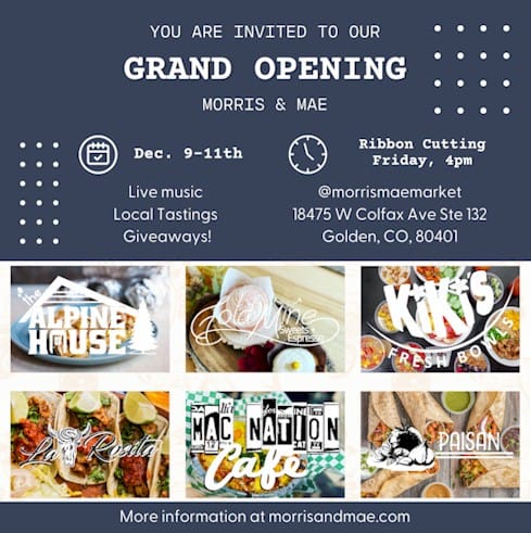 We are excited to announce that Morris & Mae is opening today! We are a food hall, bar, and local market located at I-70 & Colfax across from the Dino Lots.