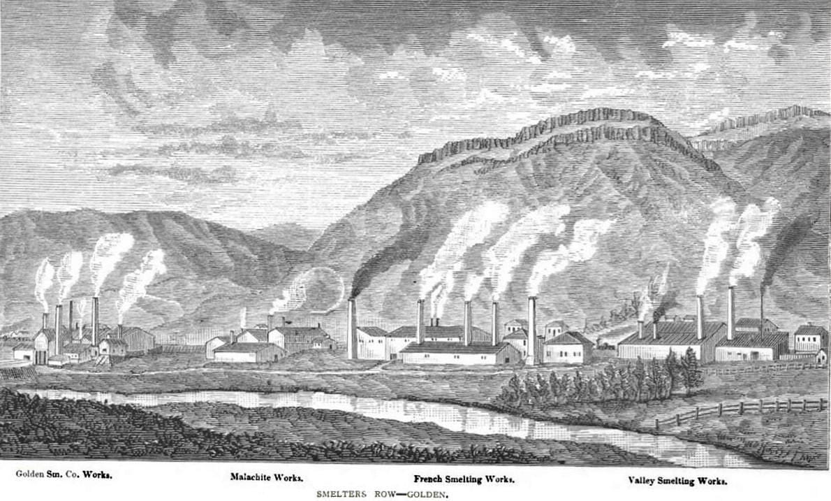 With its ready supply of coal, Golden’s leaders saw the town as a logical place to locate smelters. The railroad would bring ore from the mining towns and Golden smelters would reduce it to pure metal.