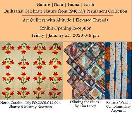 The public is warmly welcomed to tonight’s opening reception for Quilts that Celebrate Nature, from the Museum’s permanent collection, and Art Quilters with Altitude.
