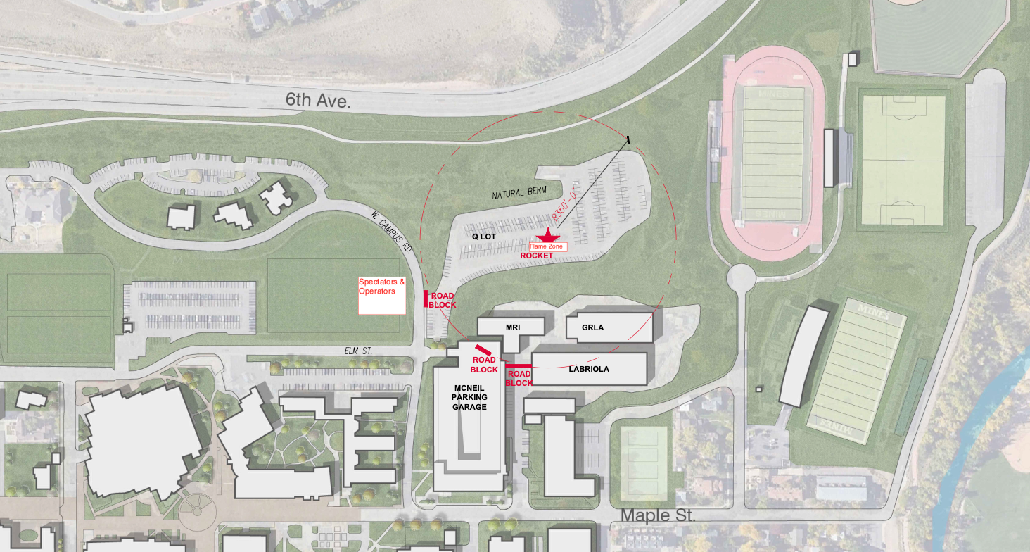 Mines is conducting an outdoor rocket engine demonstration on Tuesday, February 10th between 2:30 and 3:00 PM in Lot Q on campus. (Please see the site map below for location details.) The rocket engine demonstration will emit a loud sound for approximately 5 - 10 seconds between 2:30 and 3:00 PM. The rocket engine will not leave the ground, nor will it be launched. This is a noise notification only.