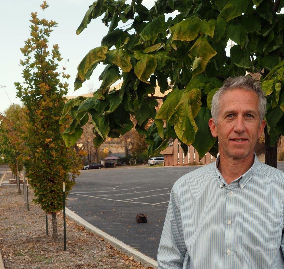 Golden resident Matt Burde was serving on the Planning Commission at that time, and had been involved in the street project. He regretted the missing trees, wishing they had been included in the final plan. In 2011, he contact the Methodist Church to ask their support for planting trees in the buffer along Jackson Street, and in 2012, he approached GURA, asking whether they would contribute money to plant trees. It took about a year, and a couple of visits to GURA, but in 2013 GURA allocated $15,000 to plant 12 trees (four northern catalpas, four regal prince oaks, and four espresso coffee trees).
