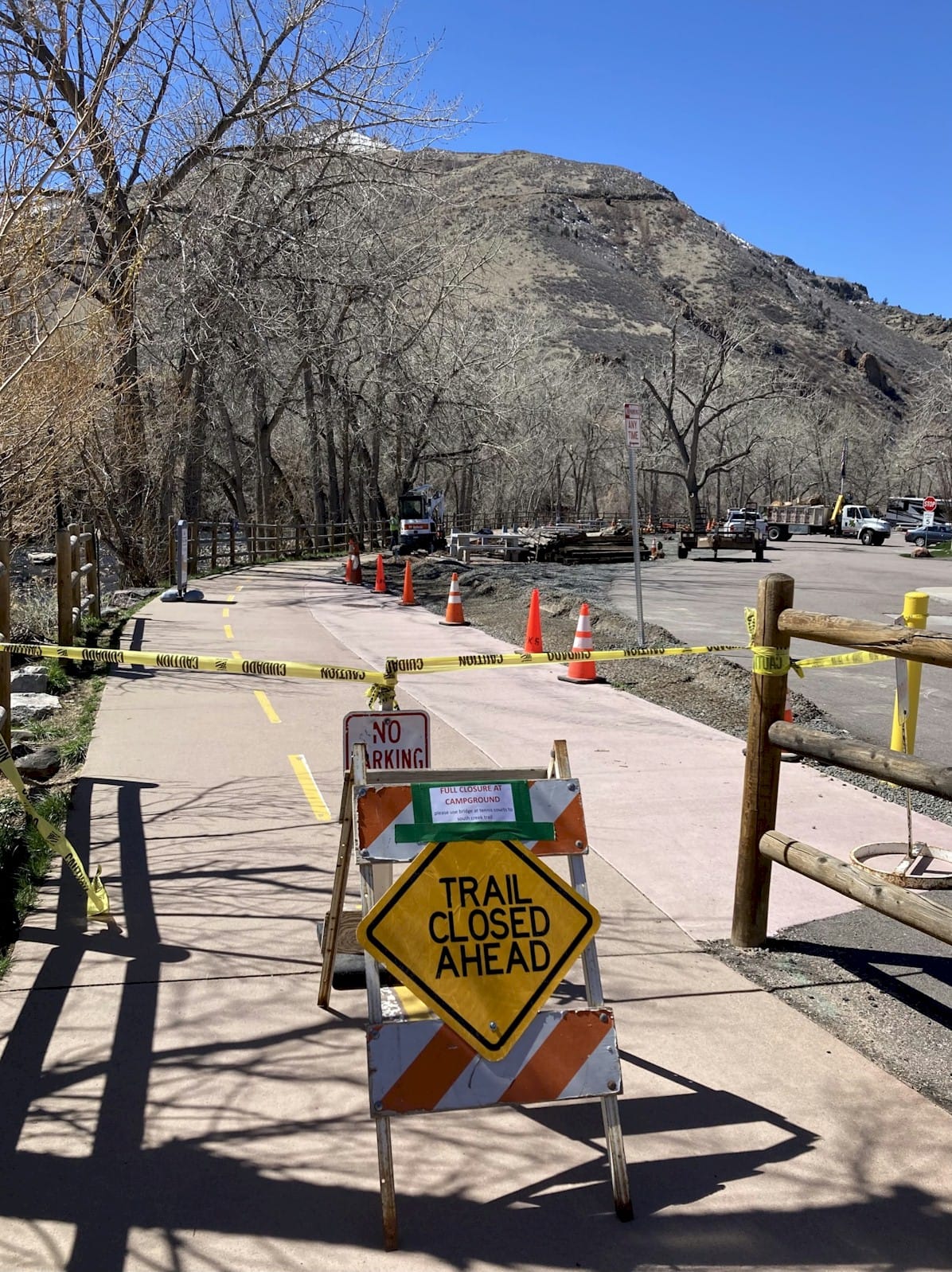 You may have wondered why access to the Clear Creek Trail has been blocked near the City's campground. The City is currently widening the path to increase capacity on the popular trail. In mid-summer, this spot has formed a bottleneck for the many pedestrians, bicyclists, and tubers who sharethe trail.