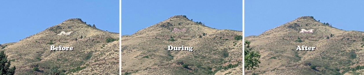The students have arrived at the School of Mines, and new students will be climbing up to the M this morning. Each will carry a 10-pound rock from their home towns. They will add it to the field of rocks that form the giant M on Mt. Zion, and then, together, they will whitewash the whole letter. Learn more.