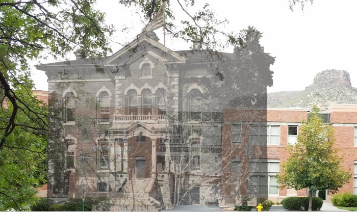 To visualize the location of the 1878 courthouse, stand in front of Foothills Art Center's Creative Campus (SW corner, 15th and Washington) and look toward Castle Rock.