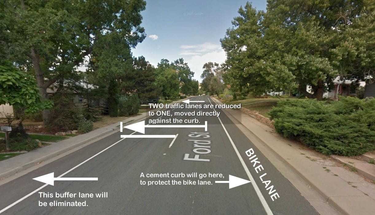 - We already have traffic back-ups on Ford Street and we're going to remove a lane and exacerbate that problem.
