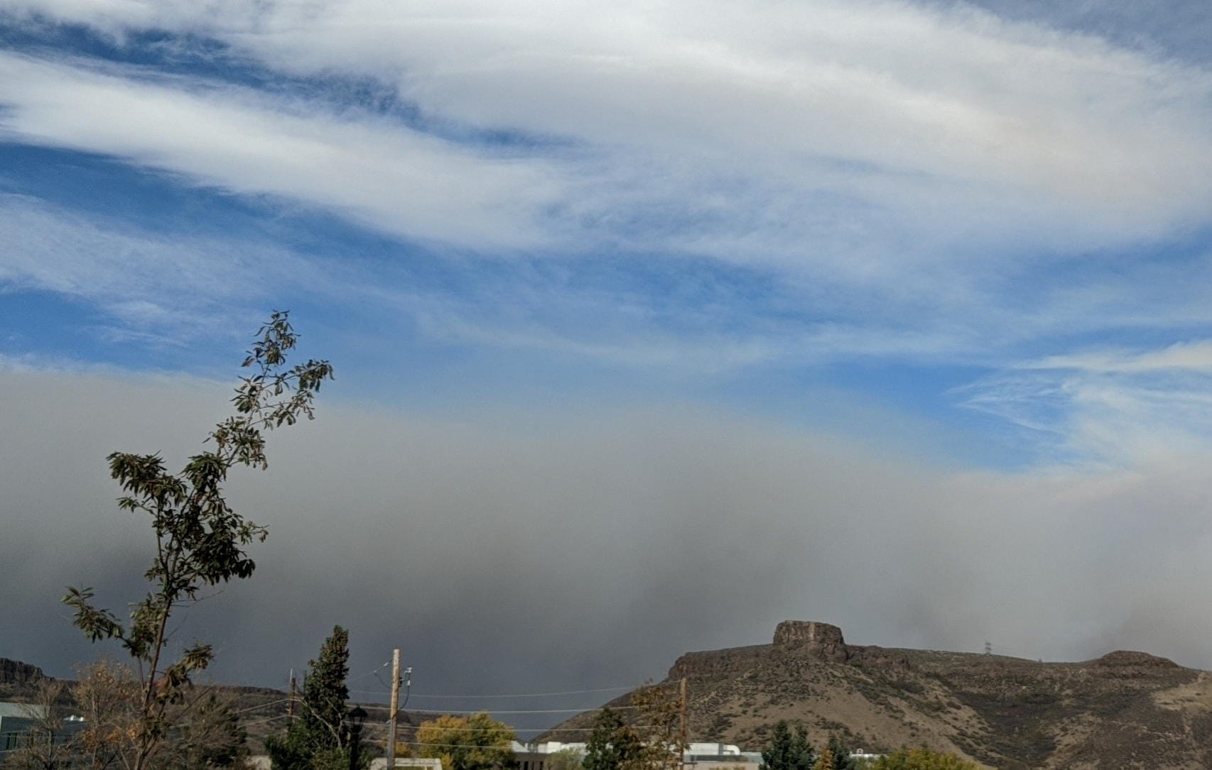 About 3 o’clock Tuesday a huge cloud of dust traveling westward was seen approaching the gap between North and South Table mountains.