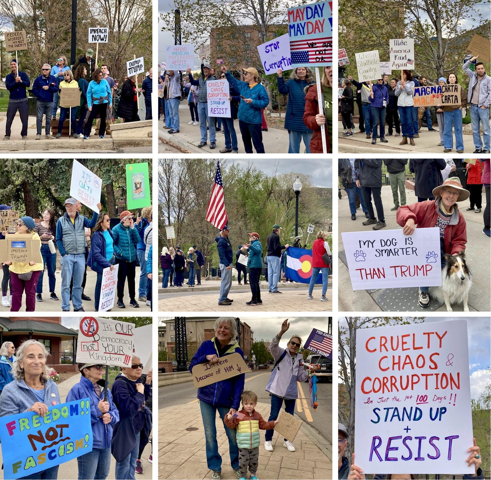 The signs covered everything from Social Security to the National Parks Service, Veterans Administration to Medicaid, Department of Education to the US Postal Service, Nuclear Security Administration to the Food and Drug Administration, and many more. Golden residents have a wide variety of concerns about changes in the Federal Government.