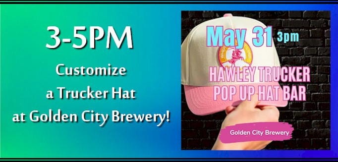 Stop by Golden City Brewer this afternoon to customize a trucker hat. (Father's Day is June 16th!)