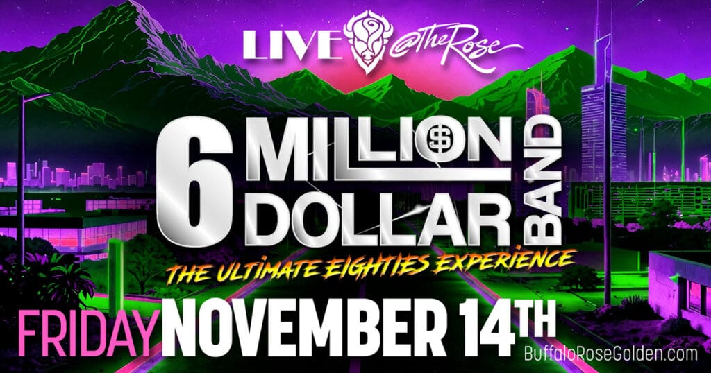 - 8PM 6 Million Dollar Band @ Buffalo Rose (main venue)