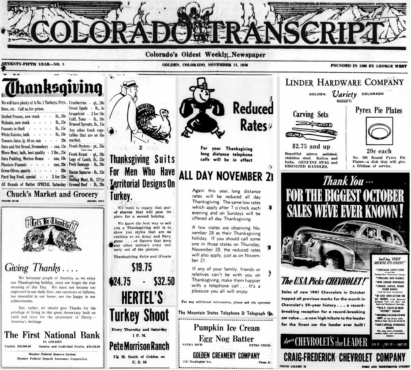 The November 14, 1940 Colorado Transcript was focused on Thanksgiving: