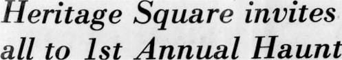 The October 24, 1973 Golden Transcript included an article that invited kids of all ages to the 1st Annual Heritage Haunt. They promised a “Costume Contest Halloween night, the Spook House, the Great Pumpkin, fortune telling, apple bobbing, and the hay ride to the stables for a marshmallow roast,” all free of charge courtesy of the Heritage Square merchants.
