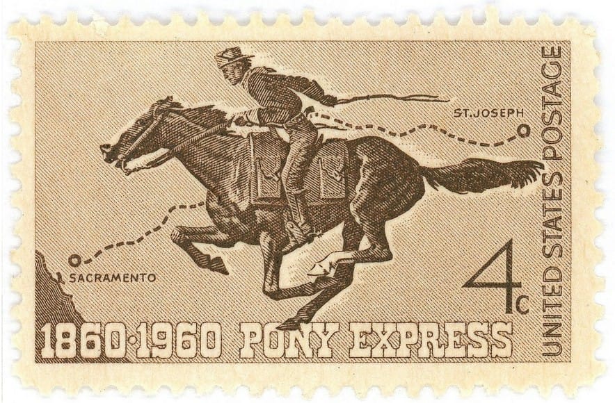 After the Mormons settled Utah in 1847 and the California Gold Rush began in 1849, the U.S.Postal Service somewhat reluctantly set up overland routes to bring mail between those western outposts and “the United States.”