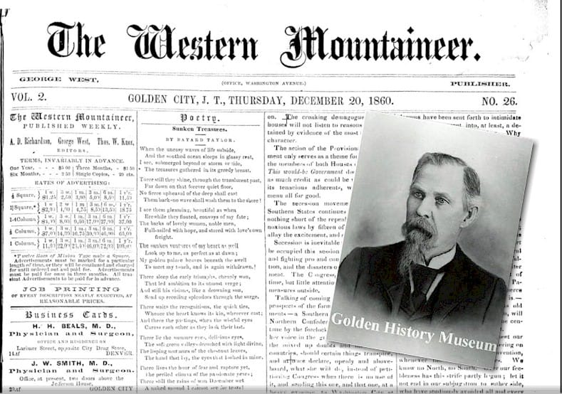 George West, who founded the Transcript in 1866, had another newspaper prior to the Civil War. The Western Mountaineer operated for only a year–from December of 1859 to December of 1860.