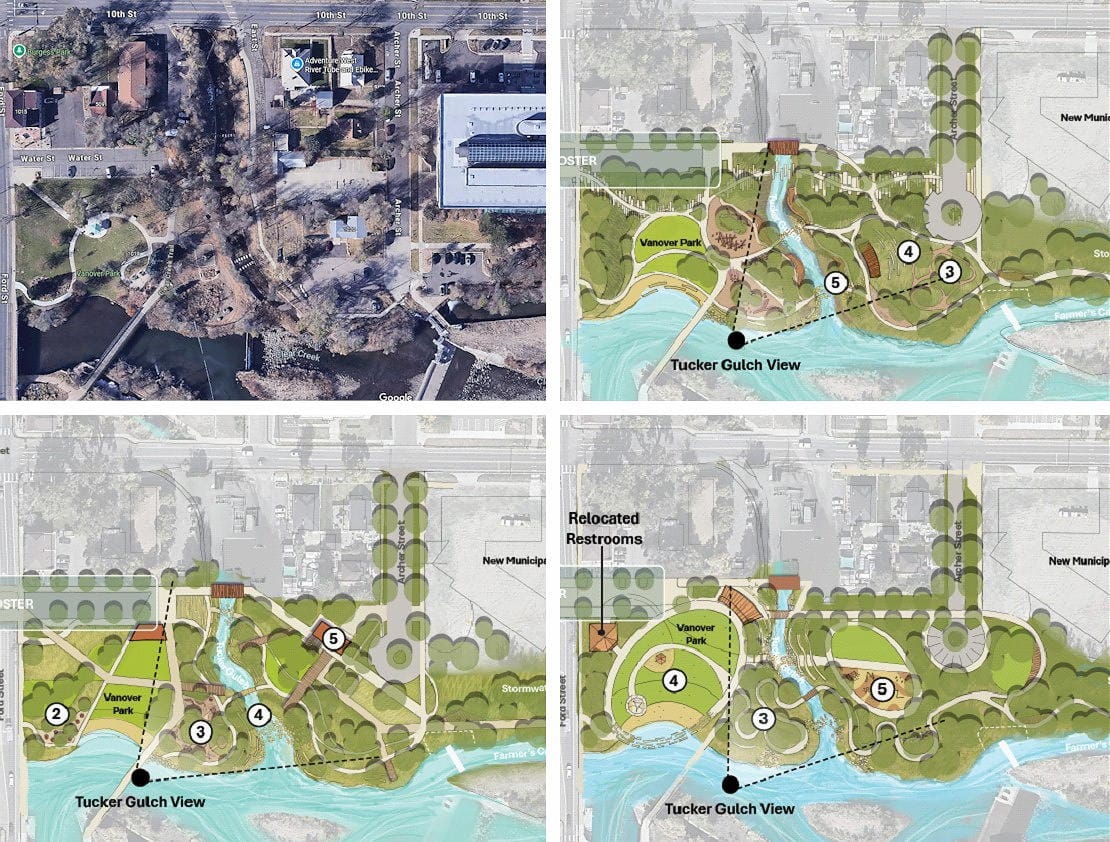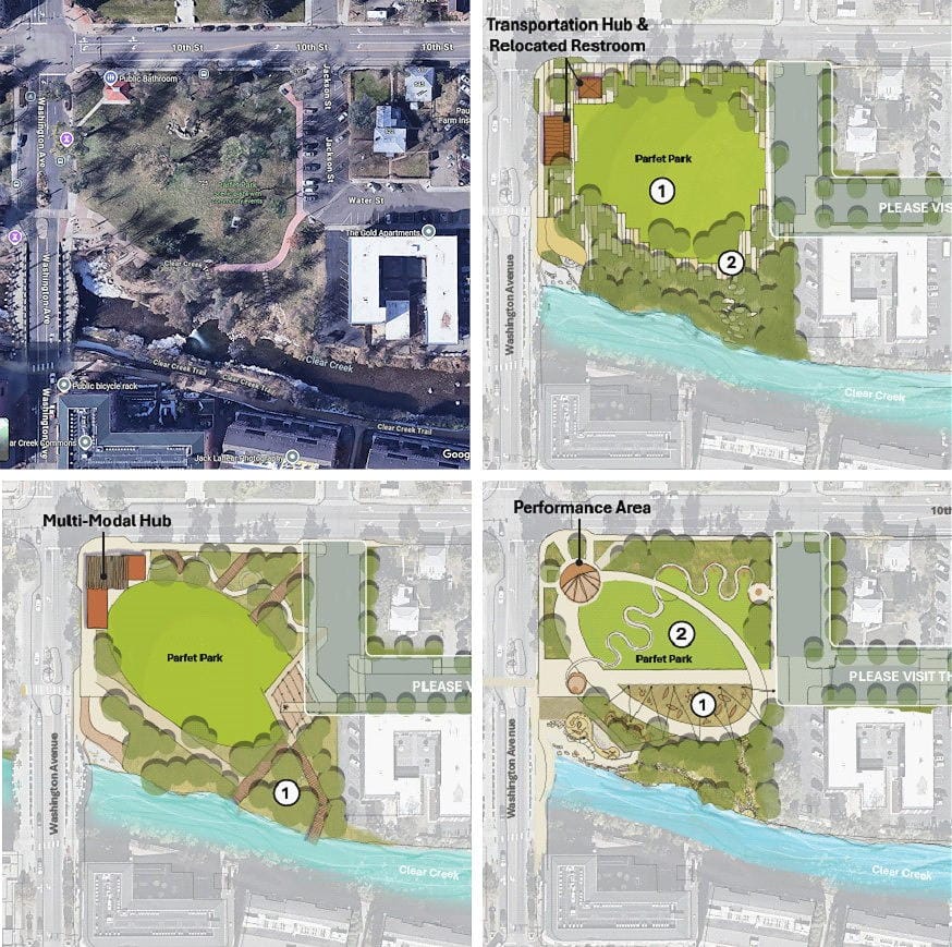 There is a survey on Guiding Golden that shows various things they could build on the land--an amphitheater, a dog park, a bike pump track ("continuous dirt track with features that let riders practice balance and control"), a splash pad, a boardwalk, etc.