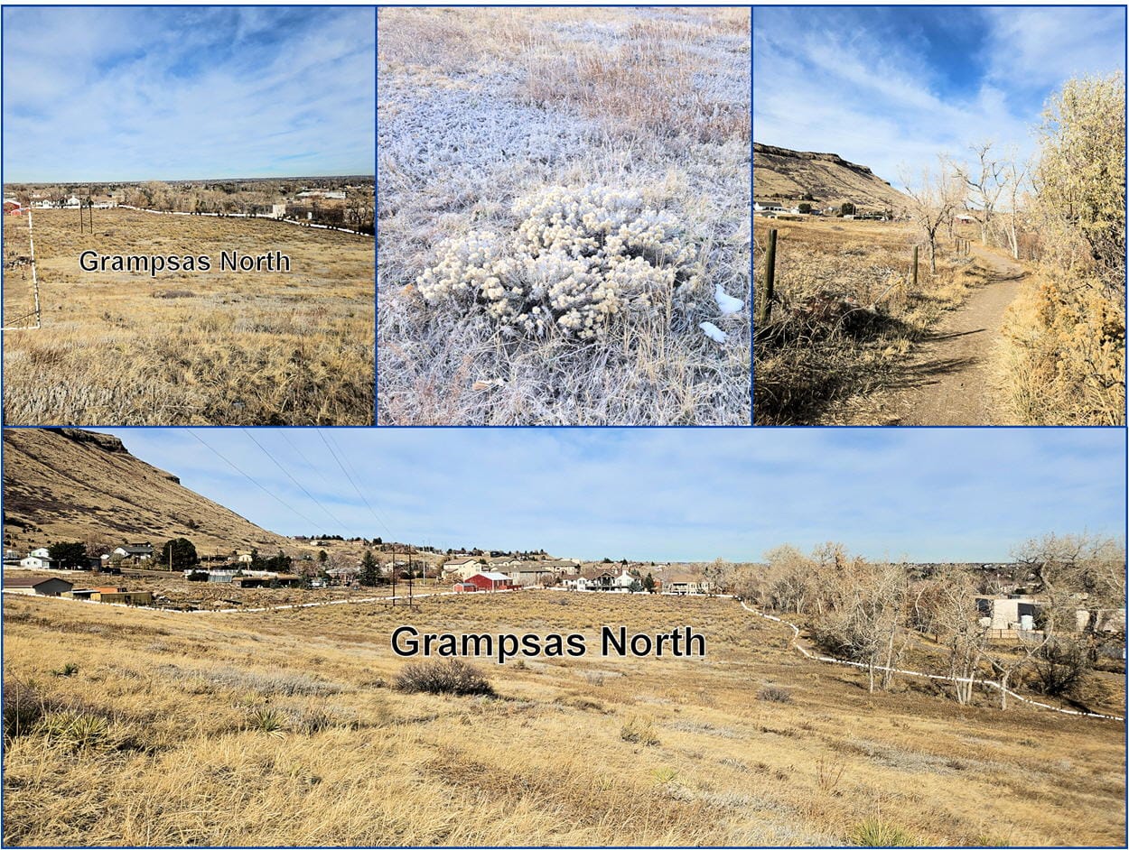 A week ago, Saturday, I went out to look at the Grampsas North Open Space. The first thing I noticed, being a beautiful fall Saturday, was that the parking lot at Grampsas Park was completely full. I found a narrow slot to squeeze my car into and set off to find the open space. Past the pickleball courts, off to the right of the archery range, through the dog park, and up the hill from the New Terrain Brewery (not actually on city property), I found the bike park across the Church Ditch. From the bike park, Grampsas North stretches out to the north. See photos, above.