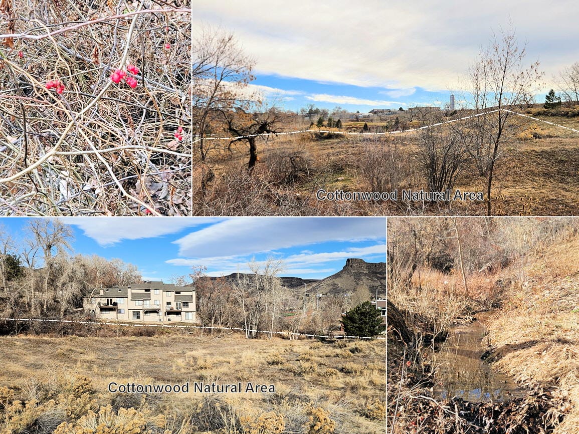 Tucked between Golden High School, Fossil Trace Golf Course, and surrounding neighborhoods, Cottonwood Natural Area feels like a hidden gem. While landlocked and lacking convenient public access, the area serves as a quiet refuge. Remarkably, when you combine the public and private open spaces with a golf course surge pond, you end up with about 6½ acres of natural land nestled amidst urban development—a surprising patchwork of greenery in an otherwise busy setting.