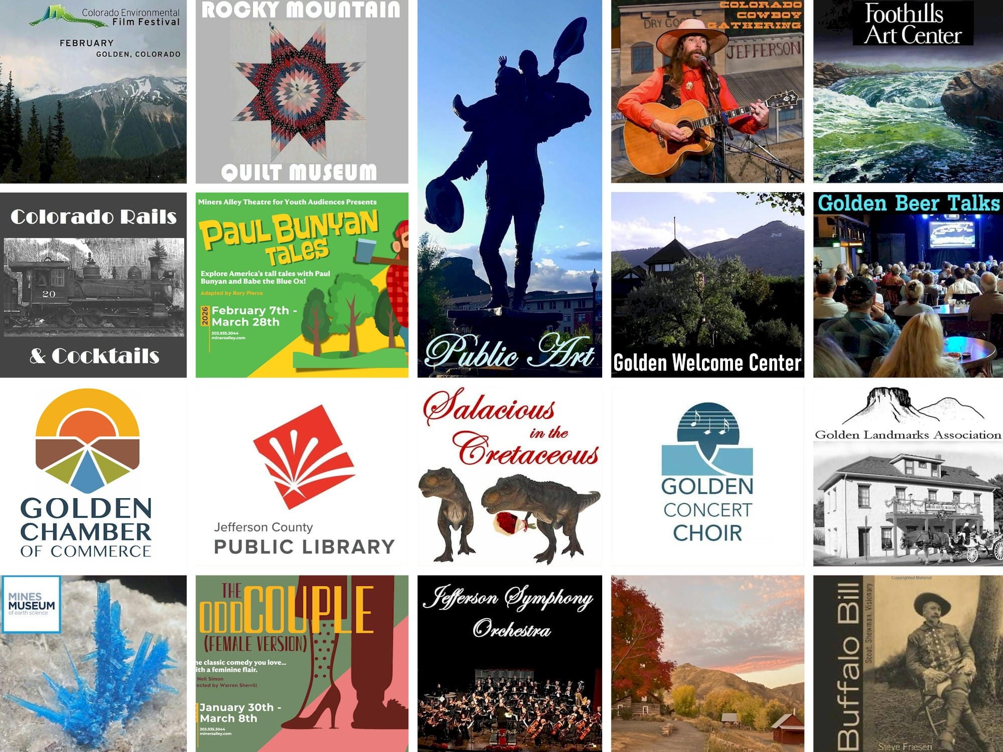 Buffalo Rose, Buglet Solar, Foothills Art Center, Golden Cultural Alliance, Miners Alley Performing Arts Center, The Golden Mill, Golden Chamber of Commerce, Golden History Tours, Miners Saloon, Golden Hayride Outpost, Unite Fitness, Clothilde Elingbow, Michael Mason, Goosetown Station, and Earth Sweet Boutique
