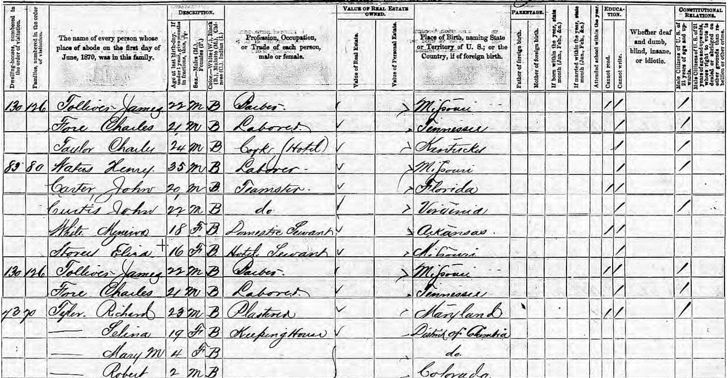 At any rate, in honor of our pioneer Black citizens, here are their hand-written 1870 census records:
