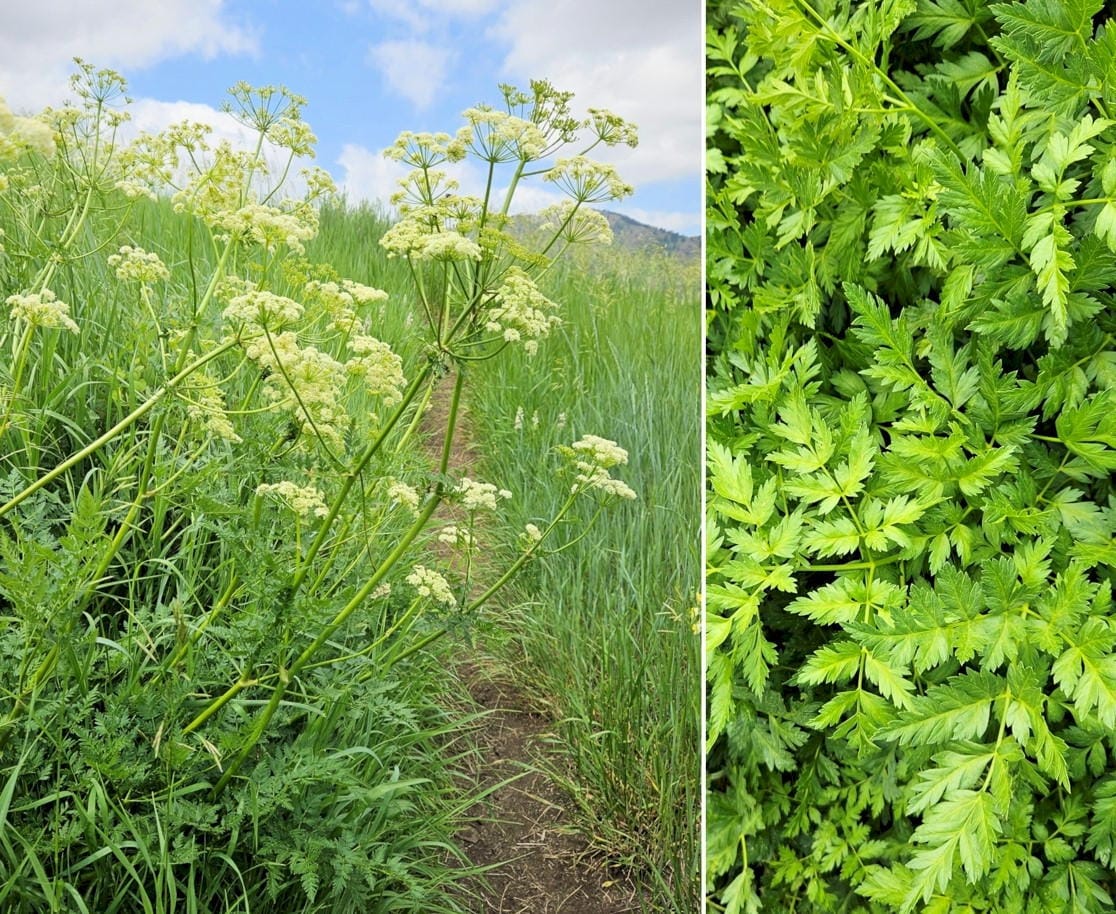 Figure 1. Osha – Ligusticum porteri J.M. Coult. & Rose – in the field. Right: Detail of leaves.