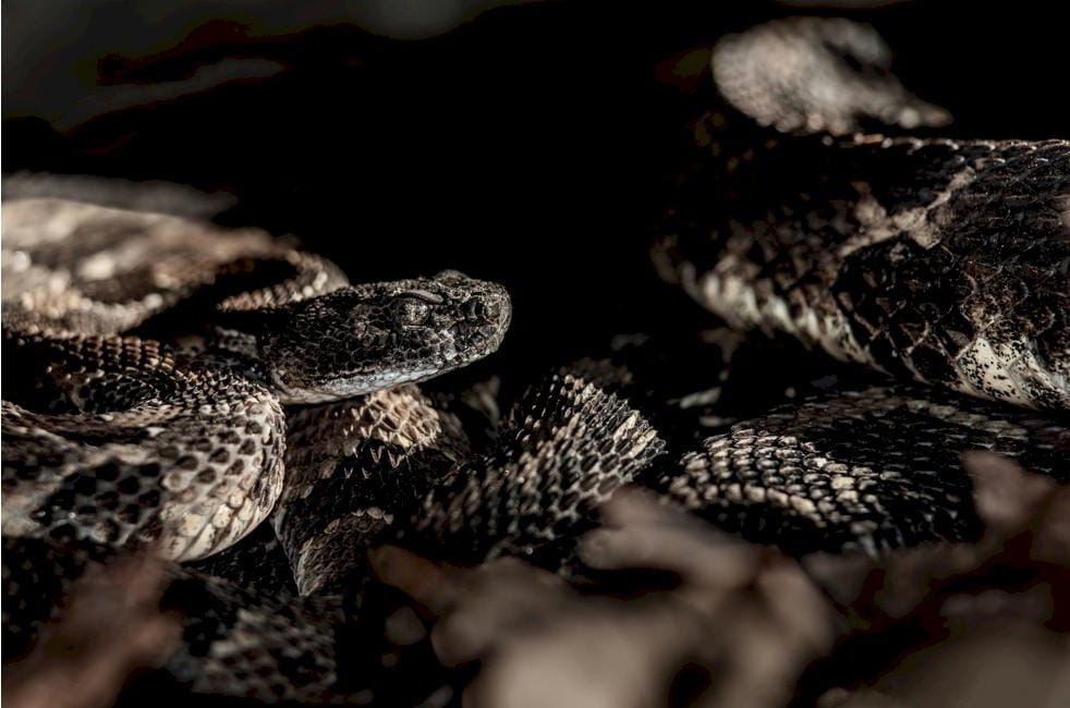 Ray McCloskey of Pleasant View climbed to the bottom of the well to attach the derrick chains to the horse, and in his descent came upon a nest of diamond back rattlesnakes.