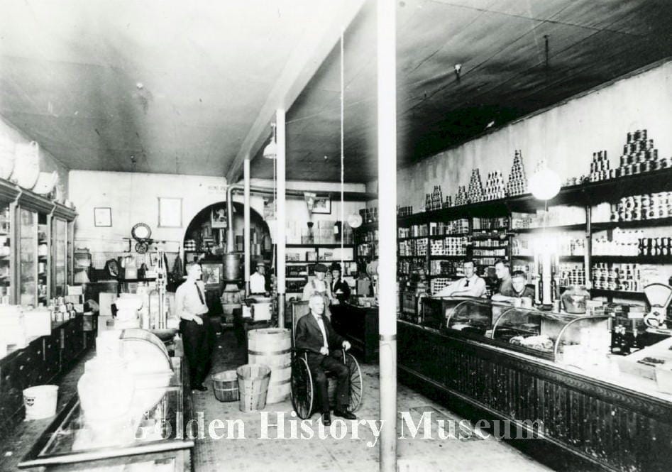 In the late 19th century, stores began to specialize more. Golden was the trading center for a large area of farms and ranches, so it supported several stores that sold groceries exclusively. Many of the stores along Washington Avenue were used as groceries at one time or another.