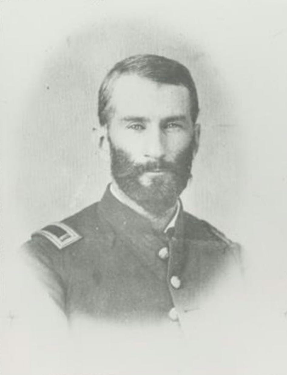 George West accomplished much as a Golden leader (e.g., Editor of the Colorado Transcript), but he had earlier military experience with the First Massachusetts Volunteer Militia, where he rose to the rank of Captain. Here in Golden and with the outbreak of the Civil War, he was again commissioned as a Captain in the Colorado Volunteers. He then formed Company H of the Second Volunteer Infantry, a unit that not surprisingly Edward Berthoud joined. West served as a quartermaster and fought with the Colorado 2nd Volunteer Cavalry in an important Missouri battle. (See below.)