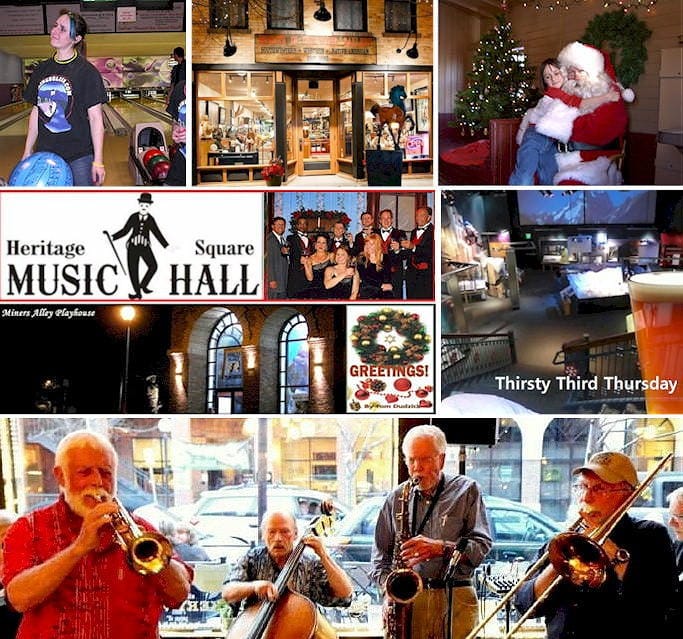 - Heritage Square Music Hall was performing their holiday play, “Our Christmas Carol.” (They’re gone.) Miners Alley Playhouse was performing a play titled “Greetings.” (They’re thriving and growing!)