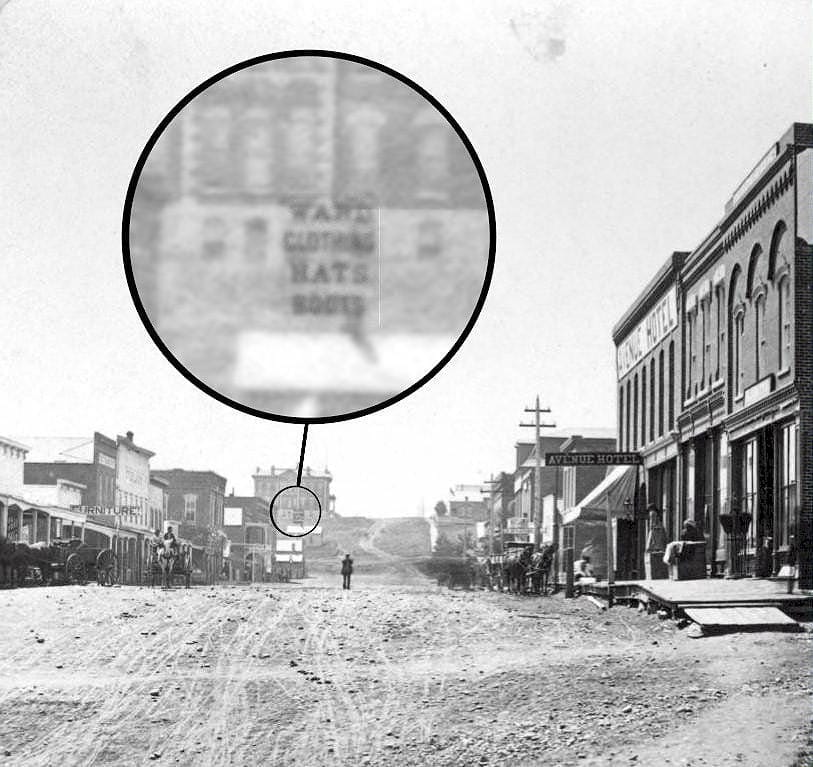 Luther Hertel purchased the Wade Clothing Store in 1906. The business was at that time operating in the Opera House Block (map). Mr. Hertel was a gifted merchandiser, and by 1917, he needed a bigger space. Nick Koenig, who ran the grocery store in the Loveland Block (map) built a new building, specifically designed to rent to Hertel Clothing, at 1222 Washington–immediately south of the Opera House Block.