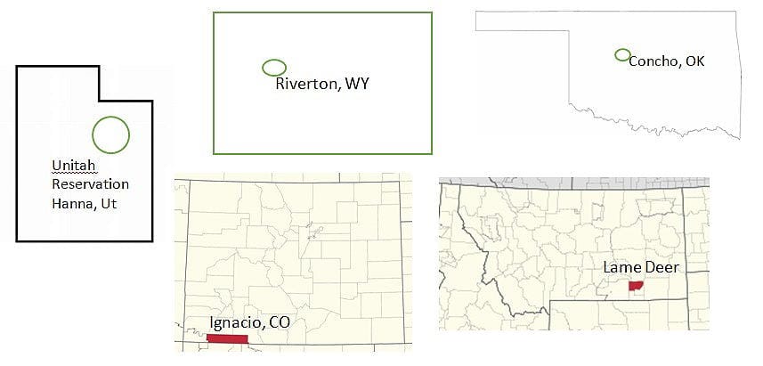 The Northern Arapaho are now located on the Wind River Reservation near Riverton, Wyoming. The Northern Cheyenne tribe is located in Lame Deer, Montana. The Southern Arapaho tribal headquarters, which they share with the