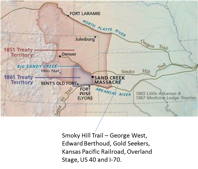 The 1851 Ft. Laramie Treaty verified ownership of a vast portion of Colorado by Cheyenne and Arapaho tribes. With the discovery of gold in 1858, easterners poured into Colorado creating conflicts and leading to the 1861 Treaty of Ft. Wise. This treaty vested a smaller area to the tribes but also established the first Cheyenne/ Arapaho Reservation, located along the north bank of the Arkansas River.