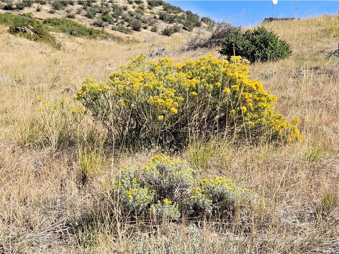 We also have a smaller variety (in the foreground of the photo above) that is variety nauseosa. Variety nauseosa can be easily distinguished from variety graveolens by its smaller size, somewhat more blue-ish appearance, and more narrow and short leaves. This is sometimes called “Dwarf Rabbitbrush” but it is not a dwarf. It is naturally small. Not very common in Golden, it is found on the lower slopes of South Table Mountain, along Highway 6 at Eagle Ridge (between Kinney Run and Centura Urgent Care), with a few plants in Kinney Run itself.