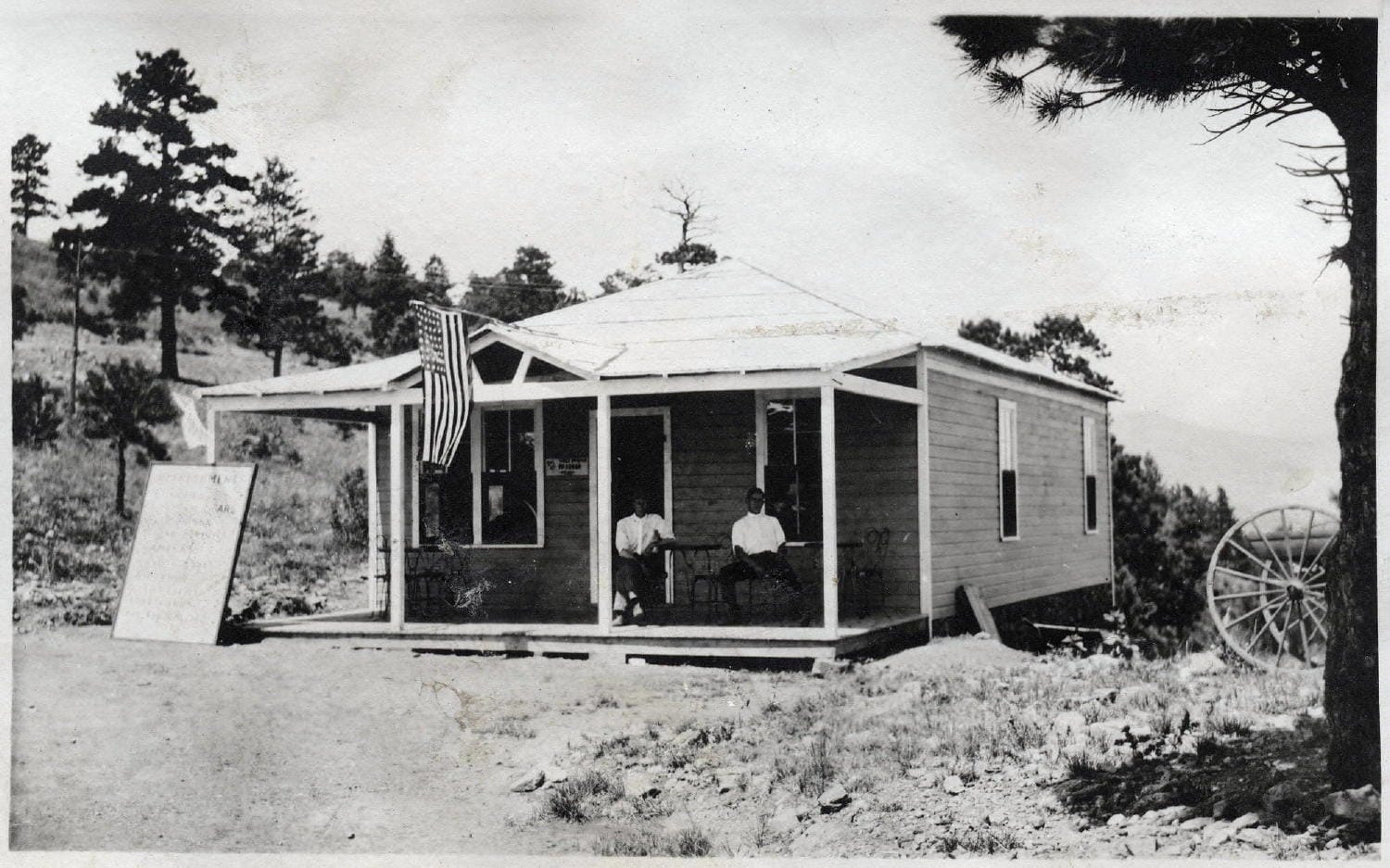 Wagenbach store on Lookout Mountain. North Table Mountain is faintly visible in the background. The sign leaning against the porch advertises refreshments. Photo courtesy of Lorraine Wagenbach.