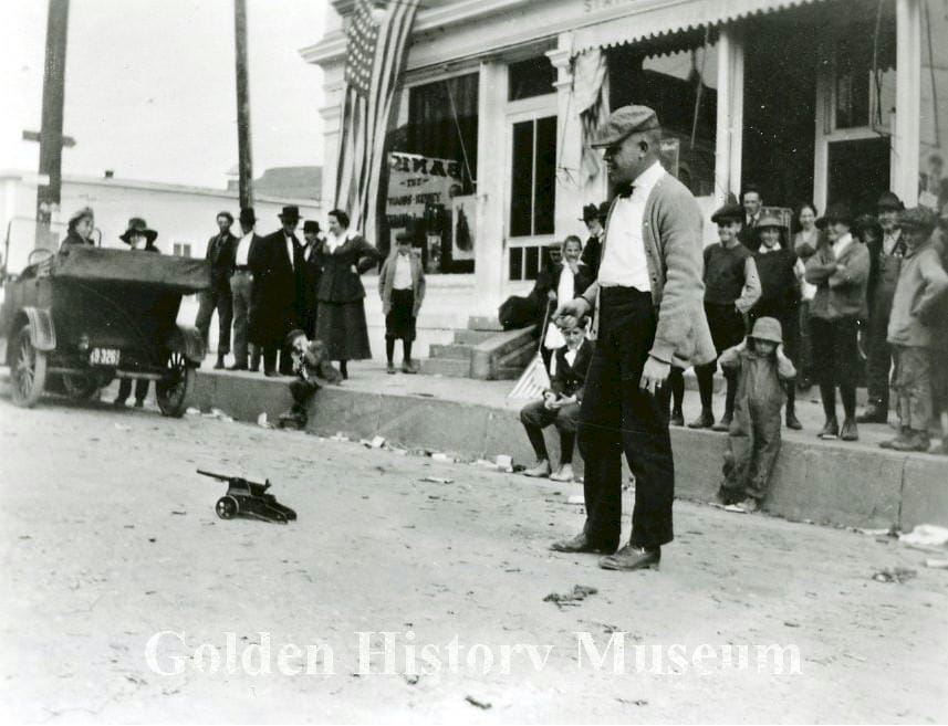 The August 16, 1945 Colorado Transcript described Golden’s joy and excitement when World War II ended. Radios up and down Washington Avenue were turned on, waiting for the message that the war was over. Word came through at 5:08PM on Tuesday, August 14h. After the announcement, the station played the Star Spangled Banner.