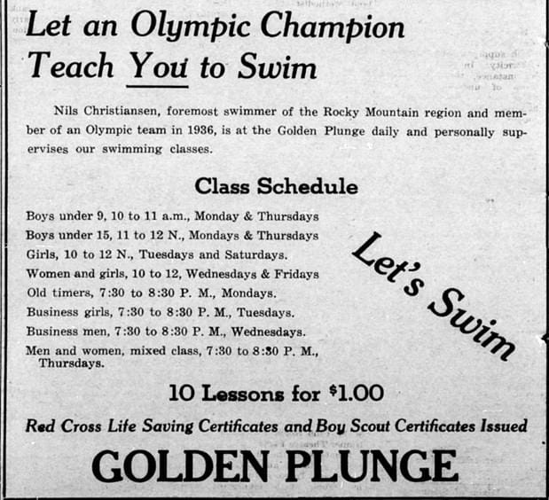 After his Berlin experience, he returned to Golden and enrolled full-time at Mines. While attending school, he worked part time as a swim instructor at the Golden Plunge pool (now located under the Buffalo Rose Events Center).