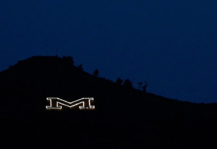 Later that year, electric lights were added so that the M would shine by night as well as by day. Many local businesses and community members contributed to the cost of the electrical work. When the permanent wiring was ready, the Governor came to ceremonially flip the switch.