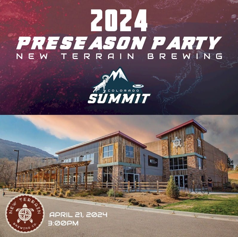 Join the Colorado Summit at New Terrain Brewing for our 2024 preseason party! Meet the players, mingle with team management, and pick up your 2024 schwag—hope to see you there! RSVP here