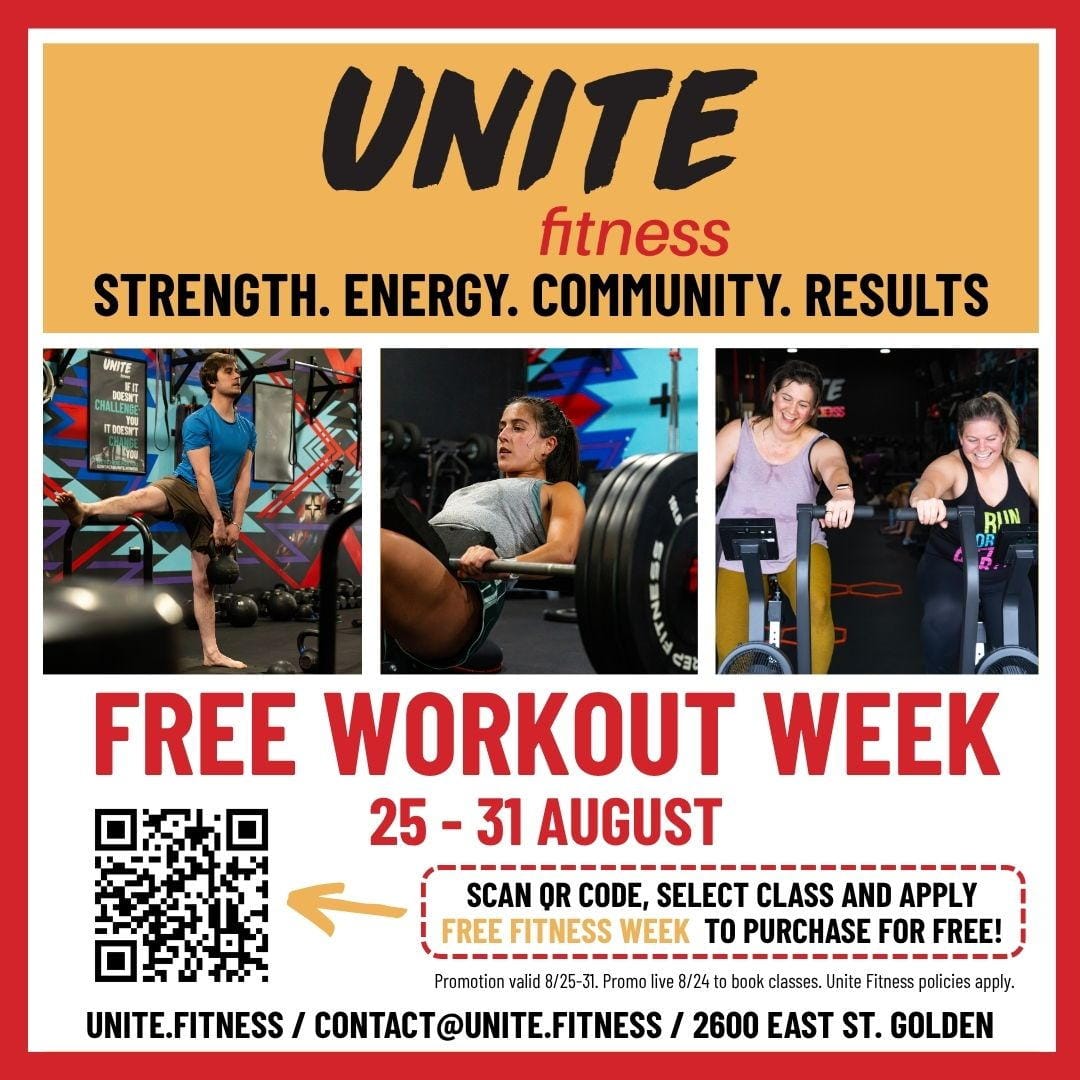 Sign up via - https://unite.fitness/schedule/ and choose ‘FREE FITNESS WEEK’ on checklist. Promotion is live 8/24 to book into classes 8/25-31. We'd love to see you all. Any questions please email contact@unite.fitness.