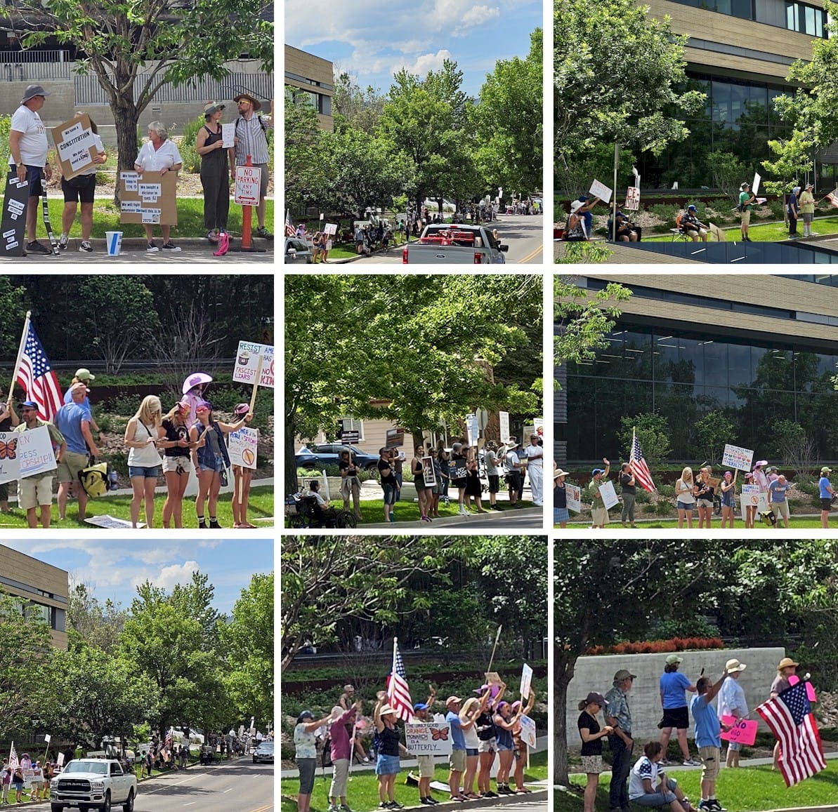 Participants were asked to arrange themselves one-deep on the sidewalk along Washington Avenue, to ensure that neither car traffic nor pedestrians on the sidewalk would be inconvenienced. As a result, the line of protestors extended from 18th Street to the bridge over Highway 58.